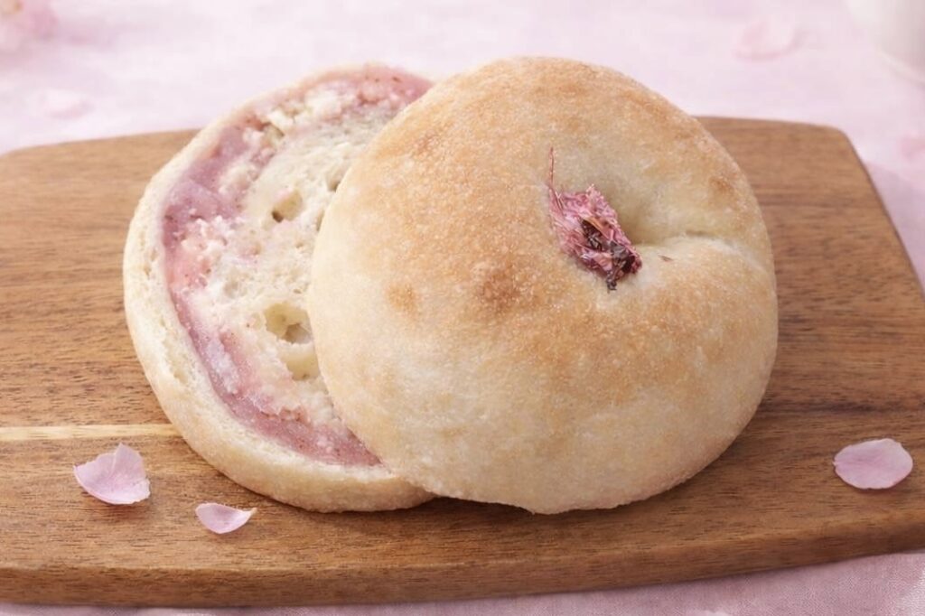2026.03.17 さくらクリームベーグル 春を感じる季節限定ベーグル。 桜の葉入りのやさしい甘さの桜あんと、コクのあるよつ葉クリームチーズを巻き込み、ふんわりと焼き上げました。 仕上げに桜の花を添えた、見た目も華やかな一品です。 春の味を是非楽しんでみてください。(❁´◡`❁)